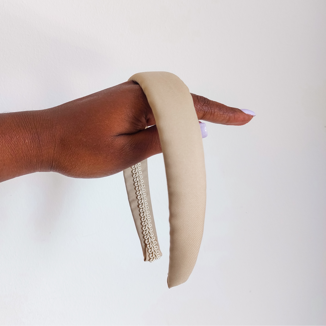 Bandolete com 3cm de largura, almofadada e forrada a tecido.